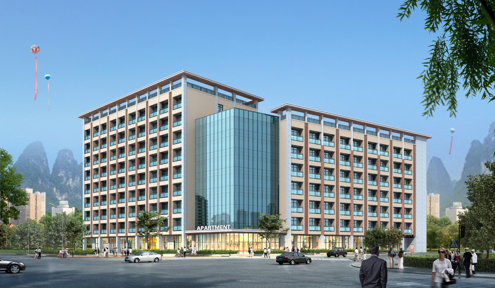 子项目二为人才公寓项目一期工程,建筑面积12000平方米,为2栋公寓建筑,建筑层数地下1层,地上高度分别为9层和7层(其中1层为沿街商业,2层以上为人才公寓),两栋人才公寓之间每层用玻璃廊道连通。